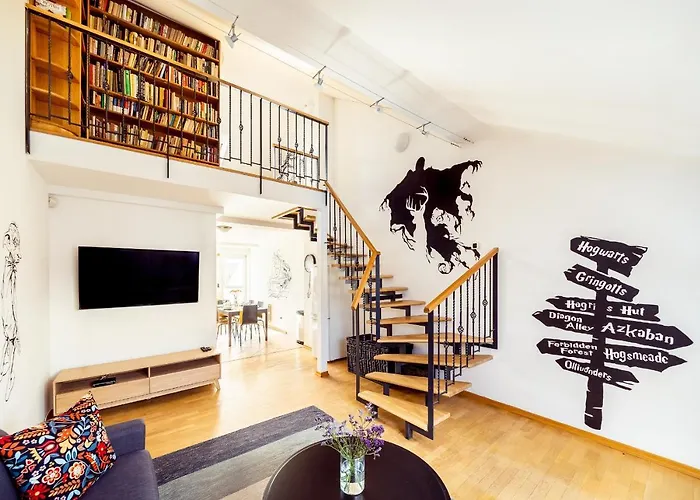 Προσφέροντας θέα στην πόλη, το διαμέρισμα 4Br 3Bath Balcony Central Harry Potter Penthouse βρίσκεται περίπου 1 χλμ. από Εθνικό Μουσείο της Πράγας. Αυτό το διαμέρισμα για 11 άτομα περιλαμβάνει 4 υπνοδωμάτια και κουζίνα